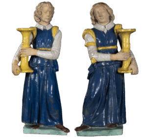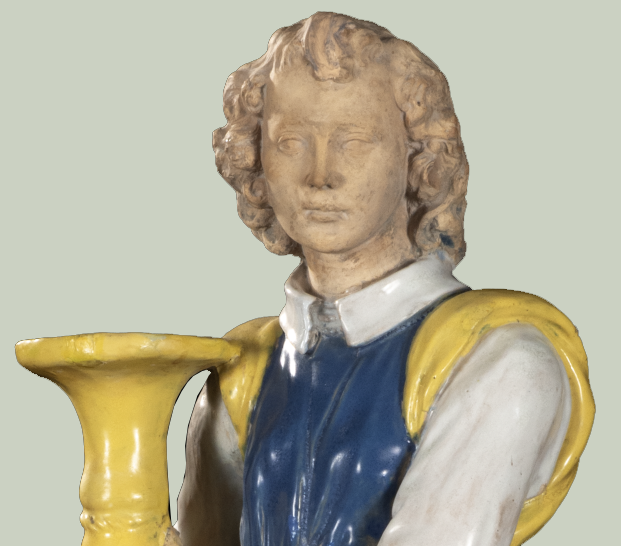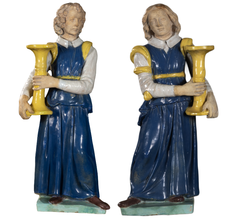Renaissance sculptors rarely signed their works. If found, contracts and payment records can establish who created larger objects; however, smaller works are most often associated with a particular workshop based on style, quality, and the figure’s individual details. Experts agree that M&G’s angels can be attributed to Benedetto Buglioni and his workshop.